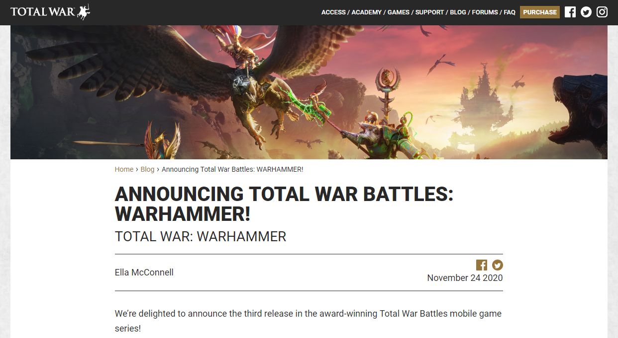 在CA和GW的官网上,目前也已官宣了这一消息。看来离随时随地在中古战锤世界中,指挥千军万马,征服世界的好日子不远了!