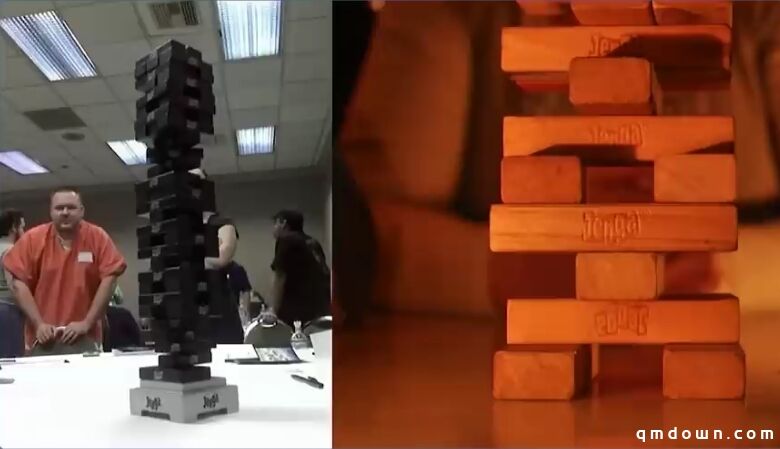 可能有人会问,我该如何将它做到一款游戏里?难道只是做表格模型而非积木塔?你可能随后会发现,这并不一定是最有吸引力的事情,而且它只是随机性和多样性。但我认为我们还忽略了他的另一个方面,如果我处在这样一个场景,当我推倒它的时候有重大事情发生,你经常会给玩家掀桌子的选项。